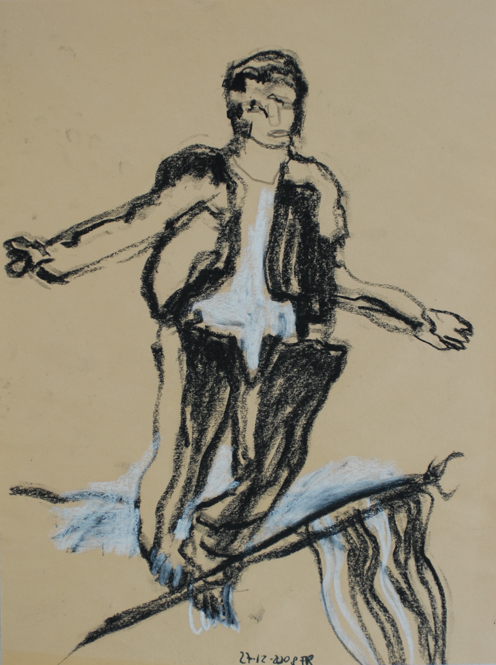 based on Georg Baselitz/ charcoal, pastel, pencil on paper/ 2008/ 9 inches x 12 inches