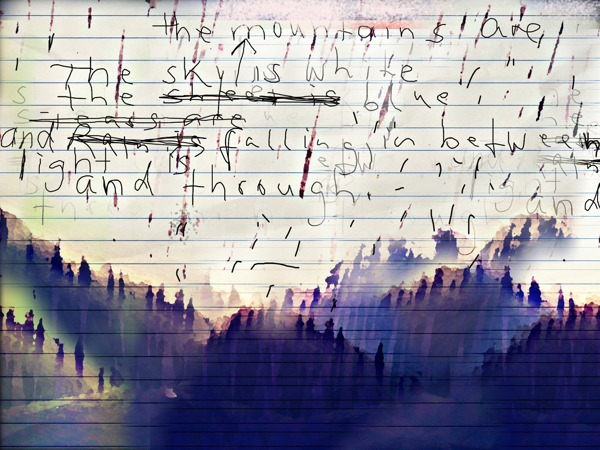 . The sky is white the mountains are blue and light is falling, in between and through / Post / November 21, 2015